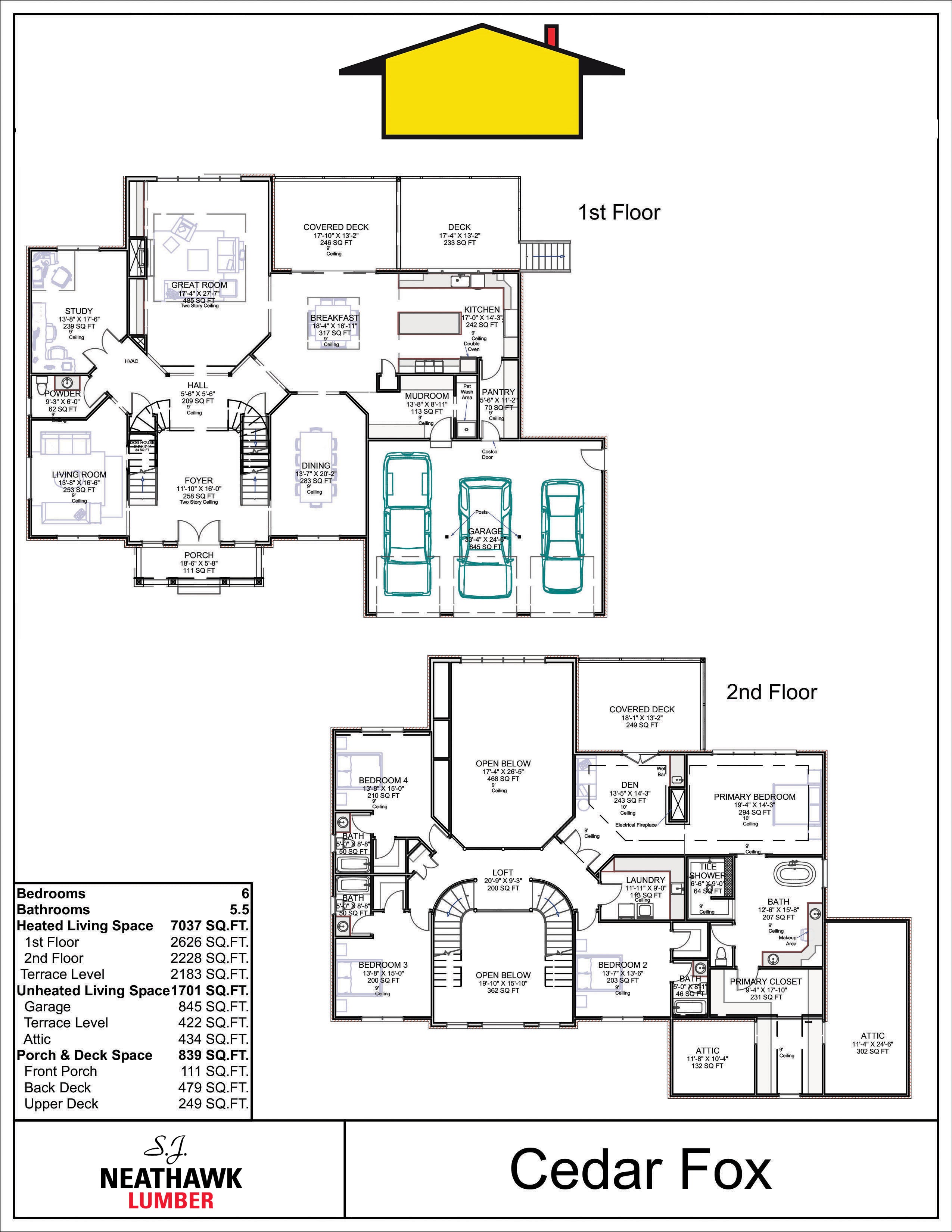 Total Heated Area: 7,037 sq. ft.