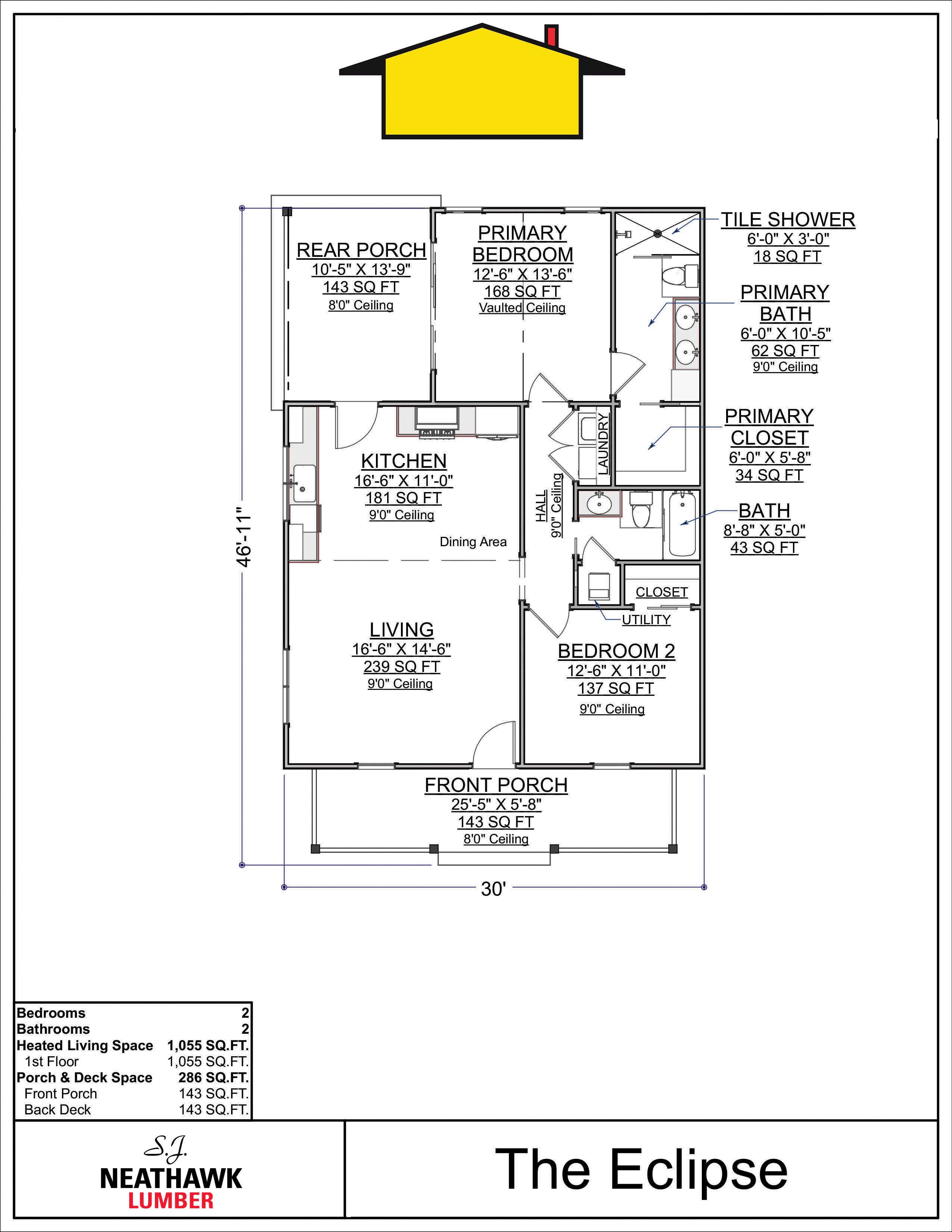 Total Heated Area: 1,055 sq. ft.